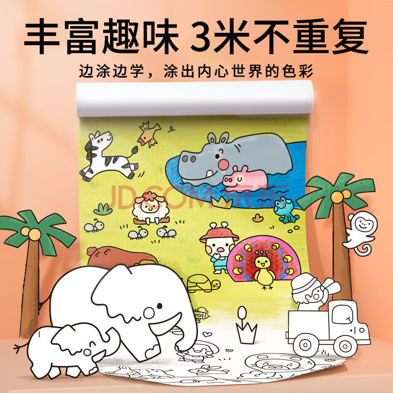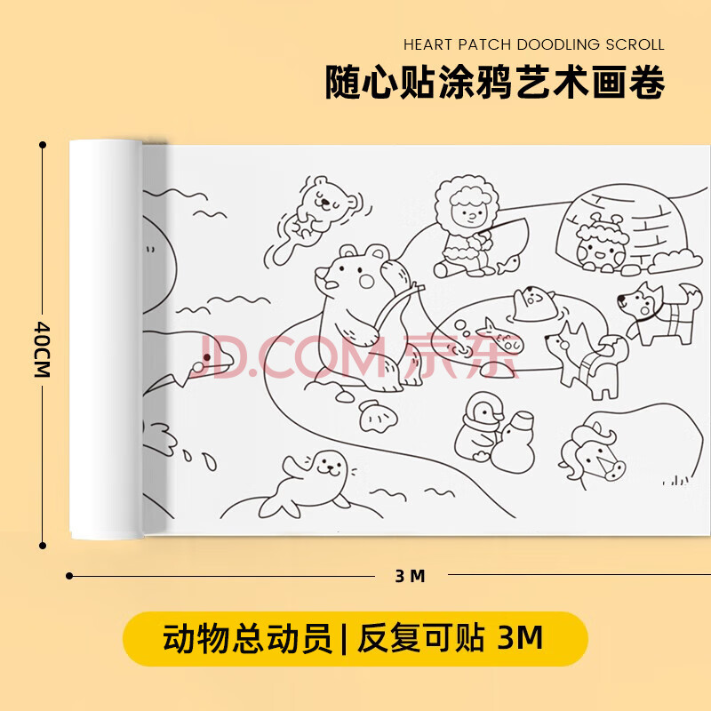 商品相册:美乐童年儿童涂鸦涂色画卷绘画卷纸不脏墙随心贴幼儿园绘画玩具动物总动员第