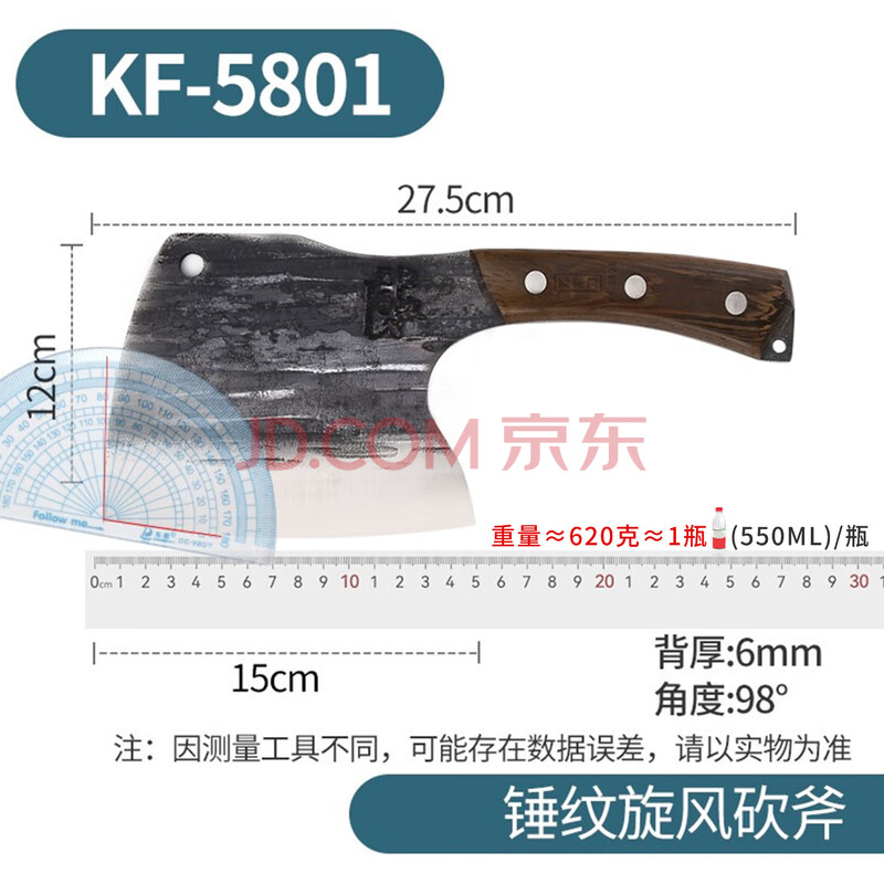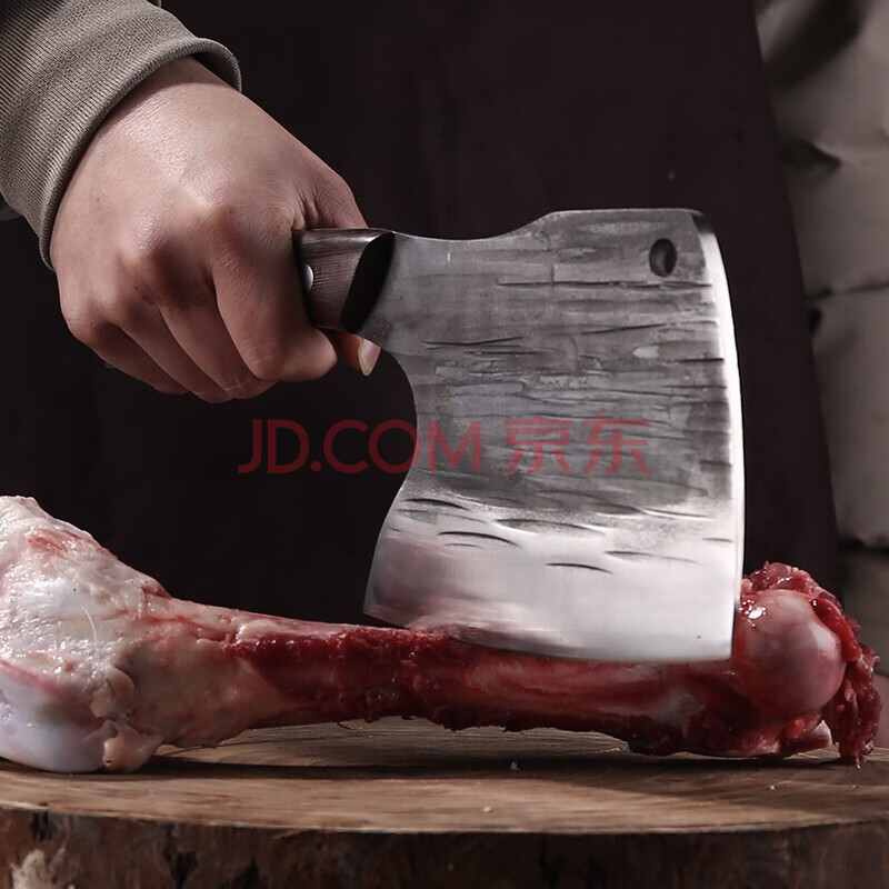 商品相册:邓家刀 锻打锤纹5铬不锈钢斩骨刀 鸡翅木刀柄 家用菜刀 KF-5801第