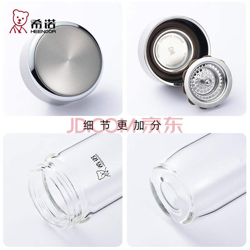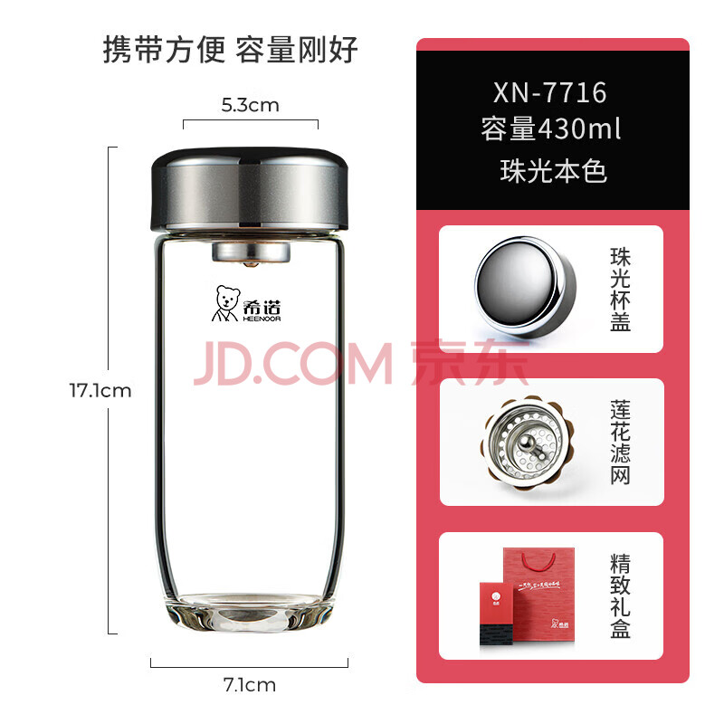 商品相册:希诺单层玻璃杯男家用办公泡茶杯子过滤车载水杯XN-7716本色 430mL第