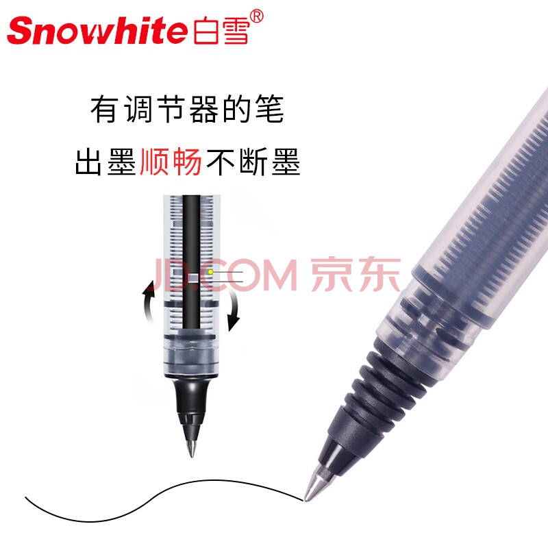 商品相册:白雪(snowhite)T15直液式走珠笔子弹头中性笔速干签字笔黑色红色办公学生用水笔 0.5mm26黑4红/盒第