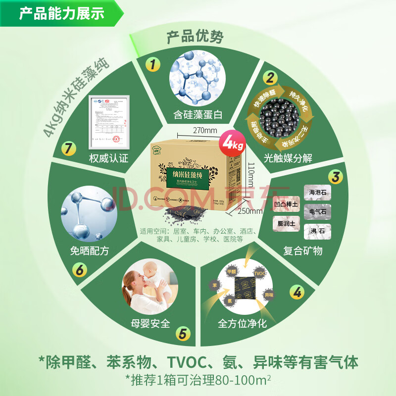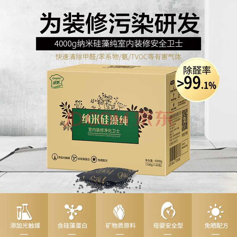 商品相册:绿驰 4kg纳米硅藻纯活性炭新房去除甲醛清除剂汽车碳包吸异味苯竹炭包第1张/共4