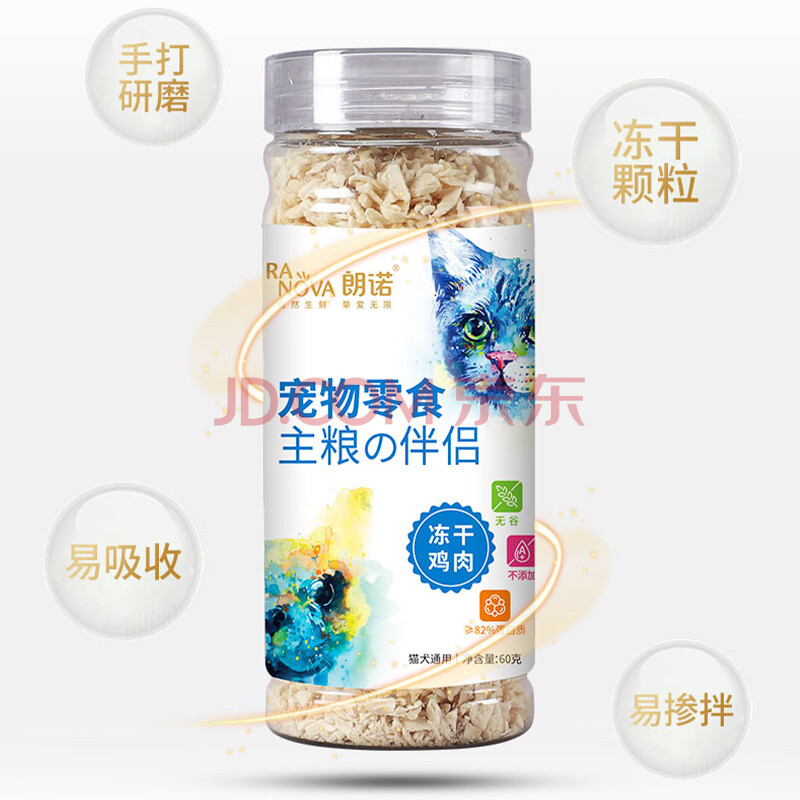 商品相册:朗诺冻干鸡肉碎宠物食品成幼猫咪零食拌粮主粮伴侣60g第