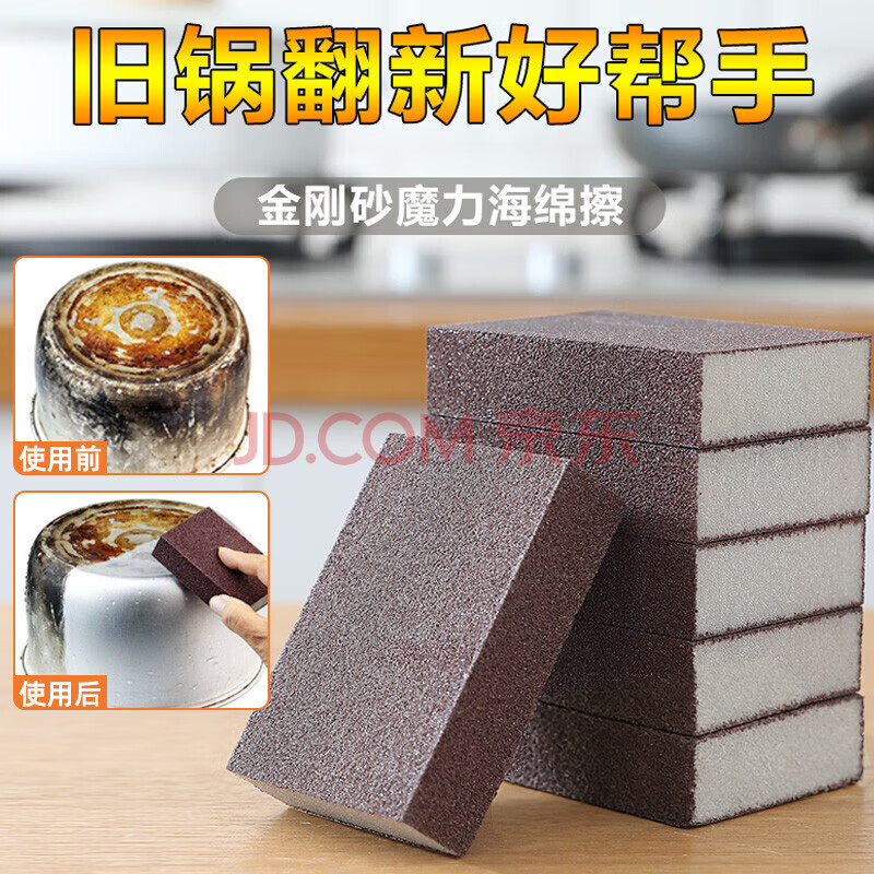 商品相册:妙然8片装金刚砂海绵擦魔力擦厨房清洁用海绵去污垢除锈第