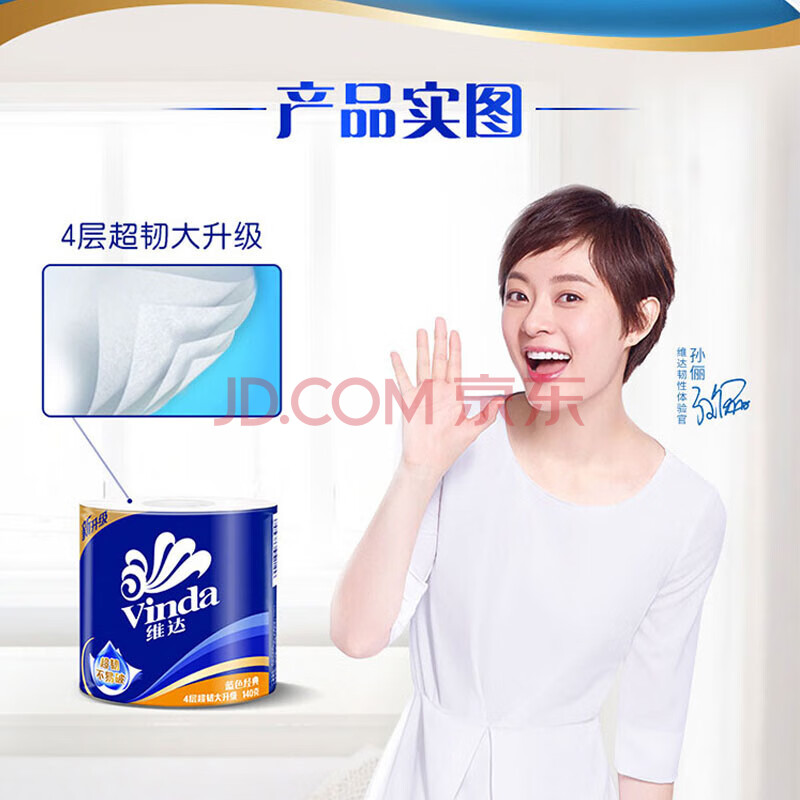 商品相册:维达有芯卷纸4层140g60卷纸巾整袋销售V4069第