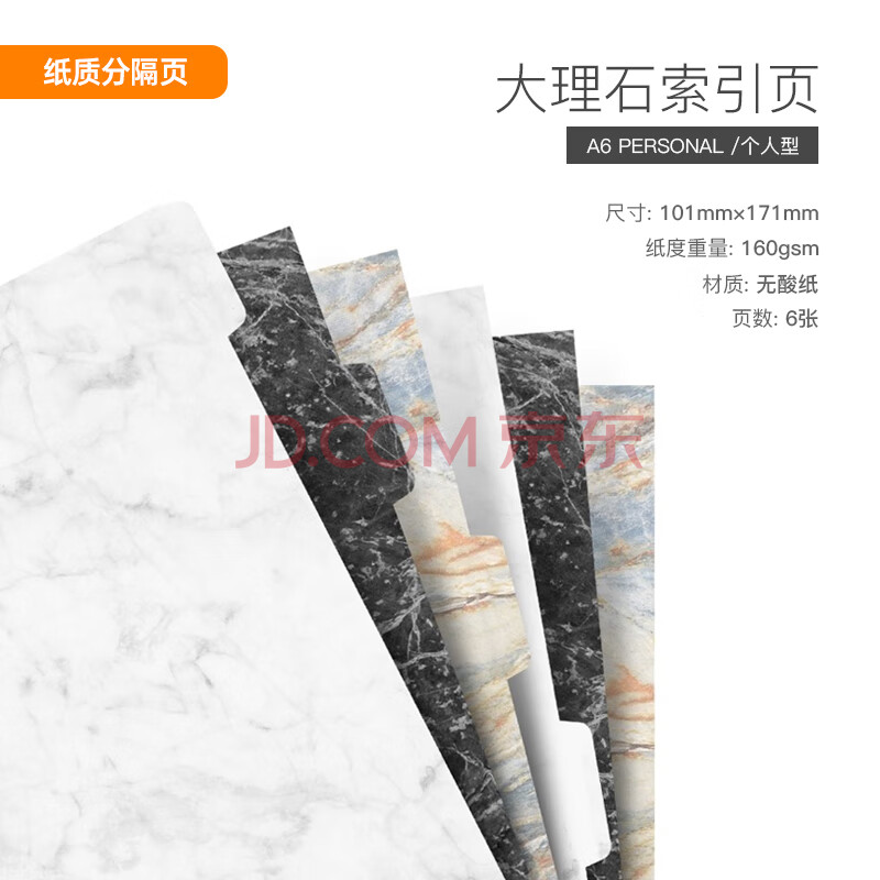 商品相册:Filofax内页替芯索引页记事本活页手帐本分隔页活页记事本替换芯英国进口打孔纸A6大理石索引页132676第