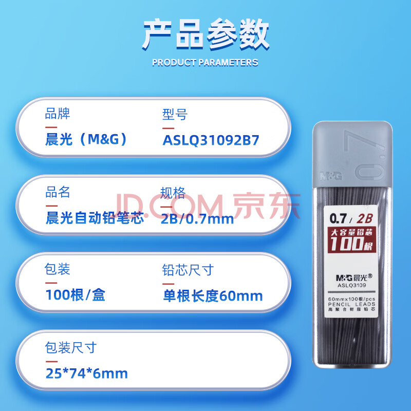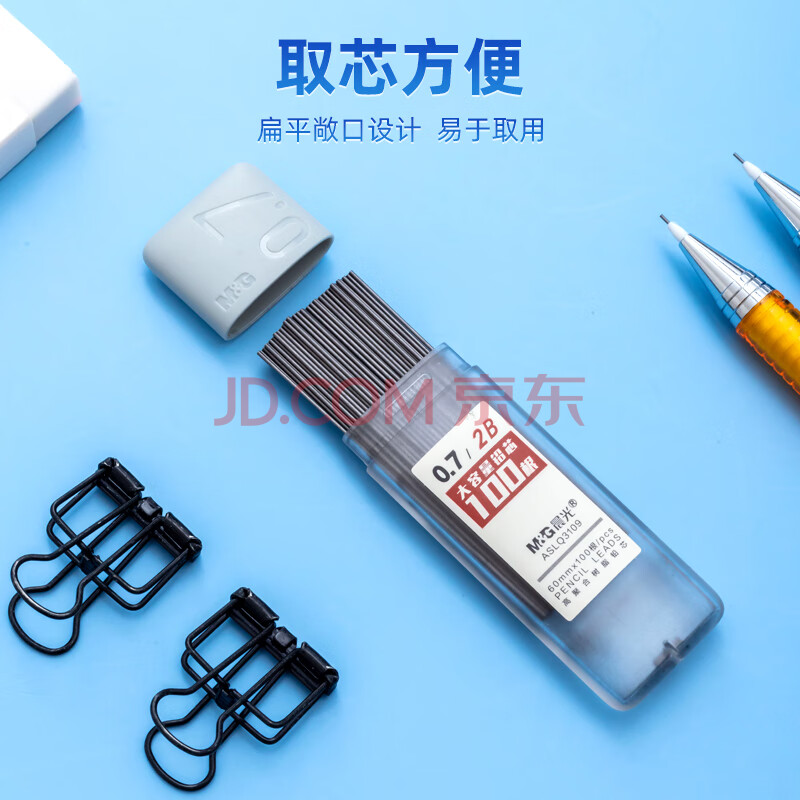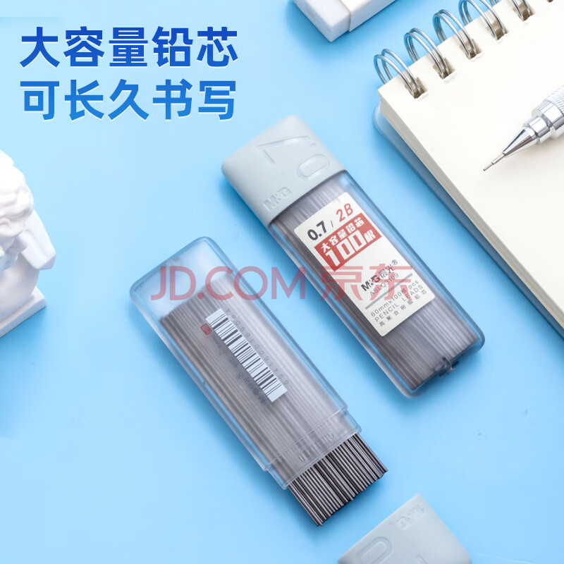 商品相册:晨光(M&G)文具2B/0.7mm自动铅笔替芯 树脂铅芯 考试铅笔芯 100根/盒 单盒装ASLQ31092B7考试必备第