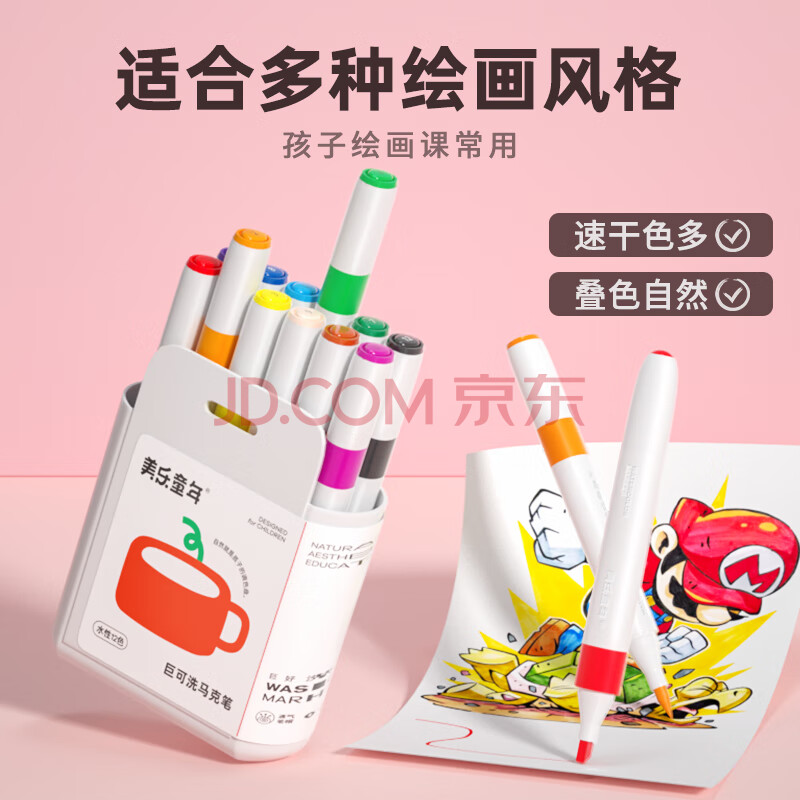 商品相册:美乐童年水性马克笔儿童水彩笔12色双头可水洗小学生幼儿园绘画玩具第