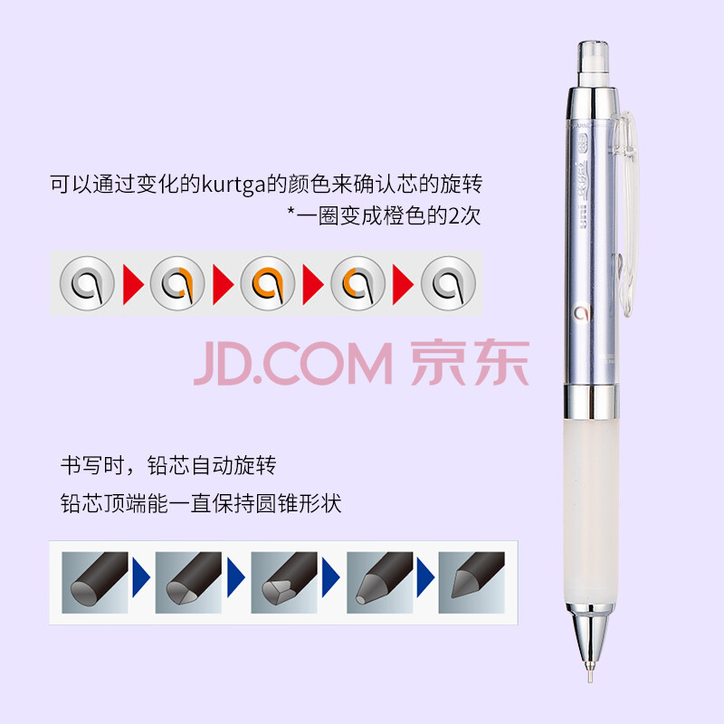 商品相册:uni三菱 学生自动铅笔0.5mm 自动旋转笔芯 柔软笔握活动铅笔 M5-858GG 淡紫第