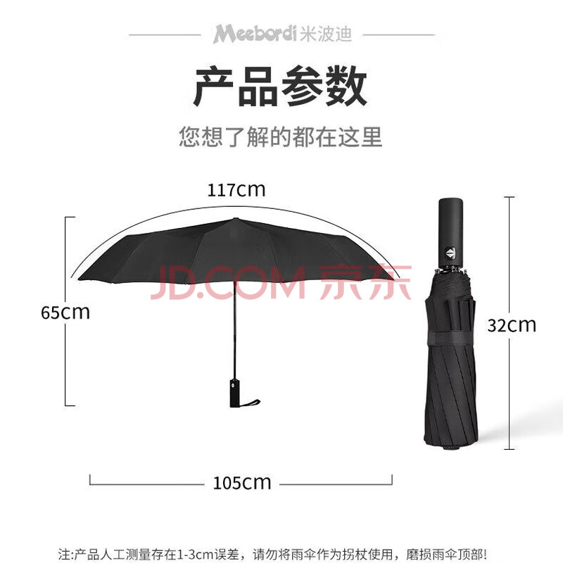 商品相册:米波迪(Meebordi)全自动雨伞三折加大号防风三折加固升级男士商务折叠伞可定制第