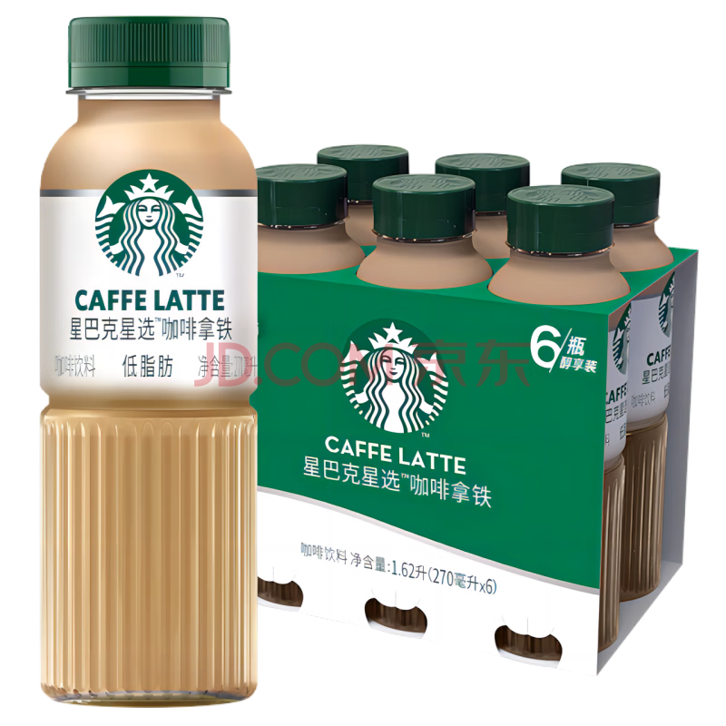 商品相册:星巴克(Starbucks)星选 即饮咖啡 拿铁 270ml*6瓶 瓶装咖啡饮料低脂肪第