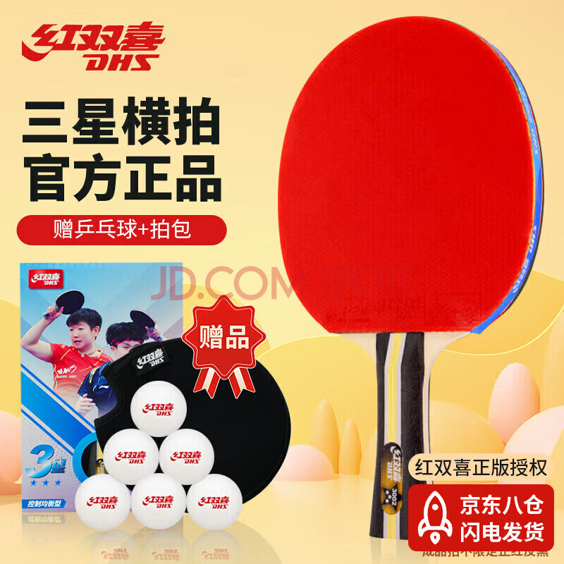 商品相册:红双喜(DHS)乒乓球拍三星级横拍附拍包附6只球第