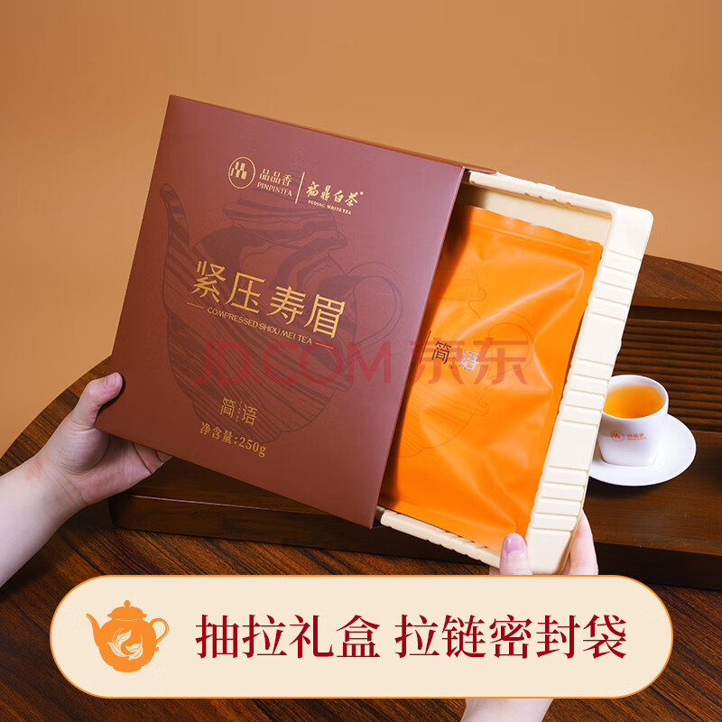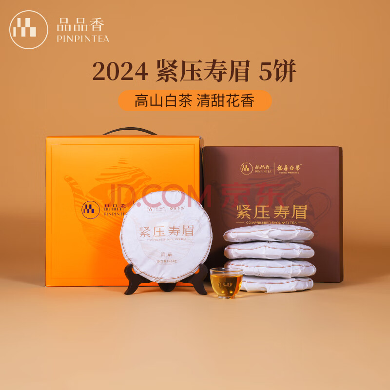 商品相册:品品香茶叶 福鼎白茶 2025年寿眉 简语紧压白茶饼整提5片装1250克 第