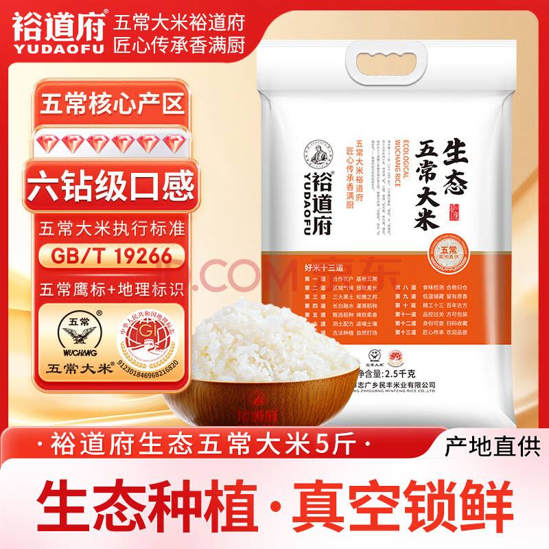 商品相册:裕道府生态五常大米5斤一袋 东北大米2.5kg 粳米 京东自营 当季新米第