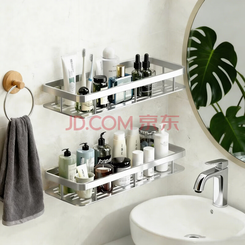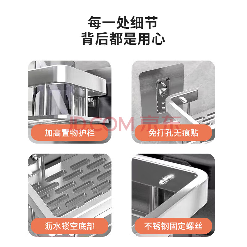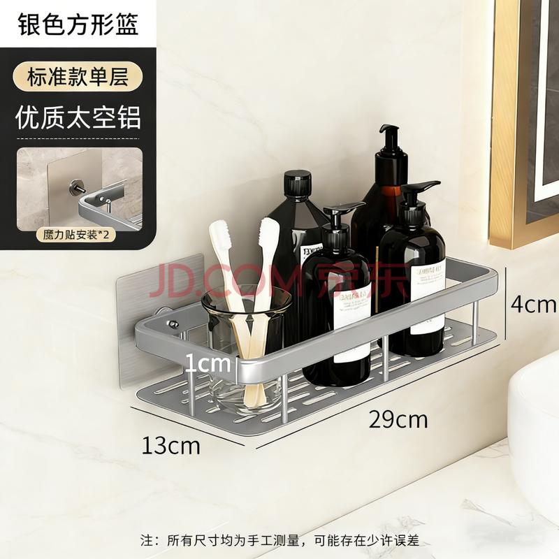 商品相册:馨沛太空铝方形浴室置物架免打孔卫生间厕所洗漱台收纳壁挂厨房储物架第