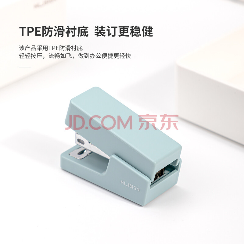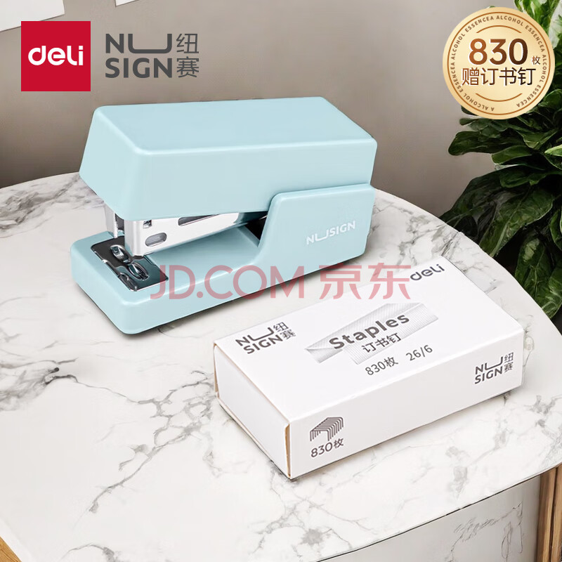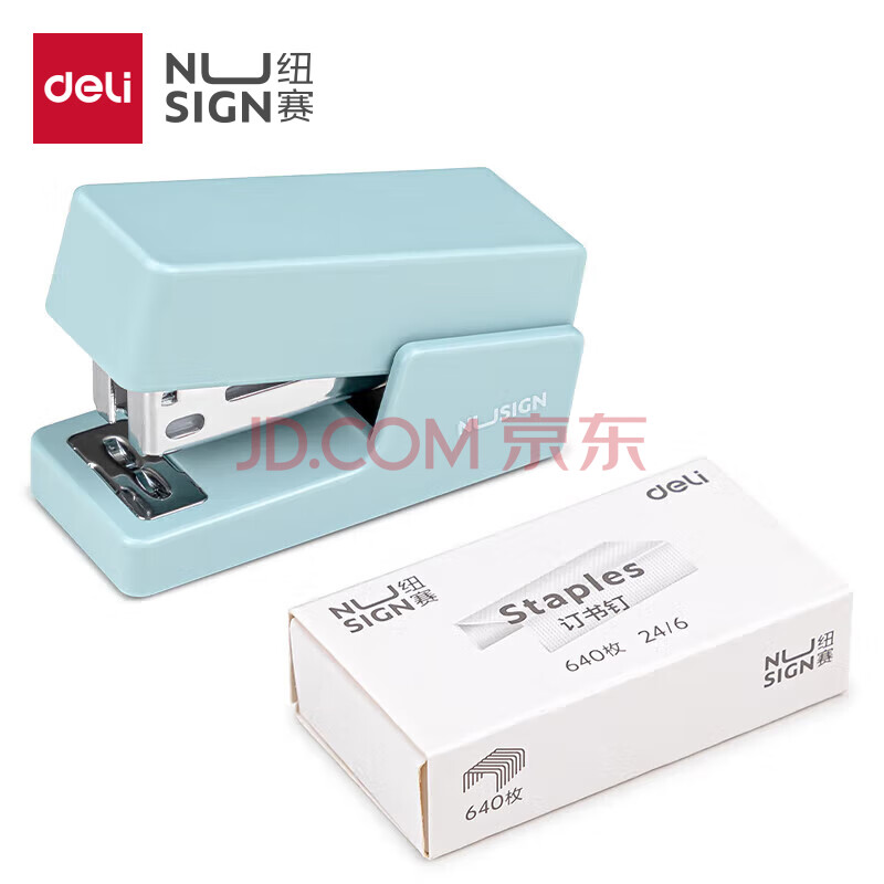 商品相册:得力迷你订书机小号学生专用 办公订书机轻巧便携手握式订书装订器赠830枚钉 办公用品蓝色NS083第