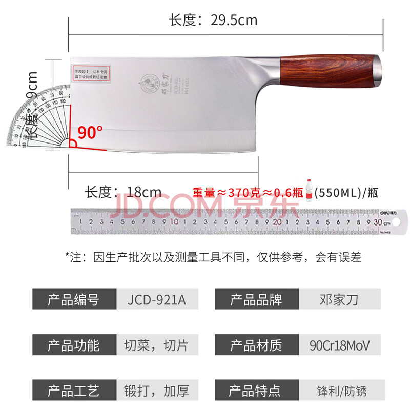 商品相册:邓家刀锻打9铬不锈钢家用菜刀90Cr18MoV锋利家用刀具切片刀 JCD-921A第