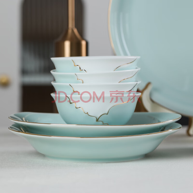 商品相册:MULTIPOTENT餐盘家用陶瓷碗釉下彩花开富贵陶瓷汤碗4.2寸饭碗4个装第