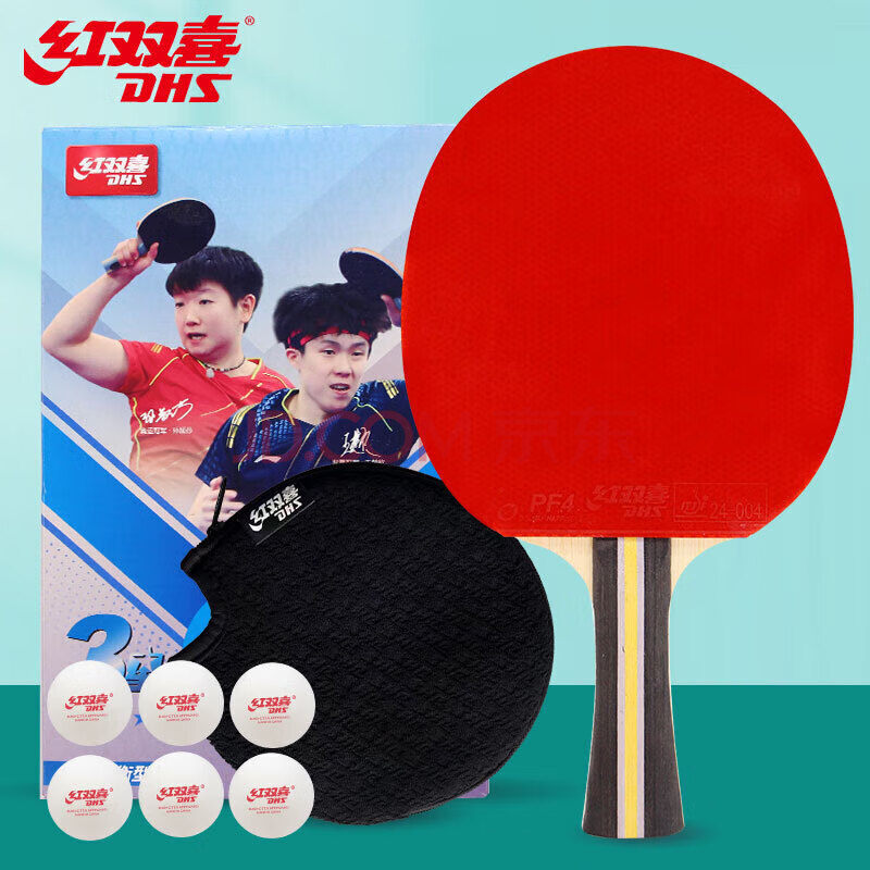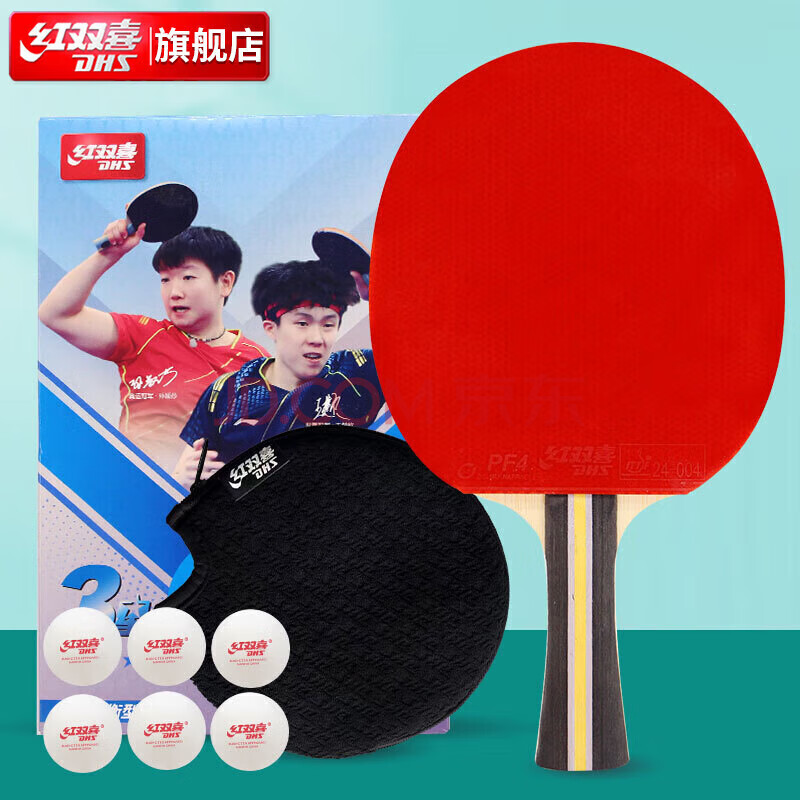 商品相册:红双喜(DHS)3星横拍双面反胶乒乓球拍H3002含6只装球第