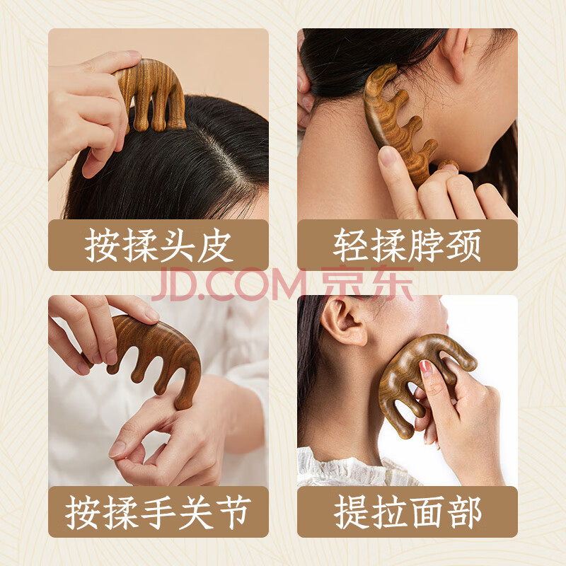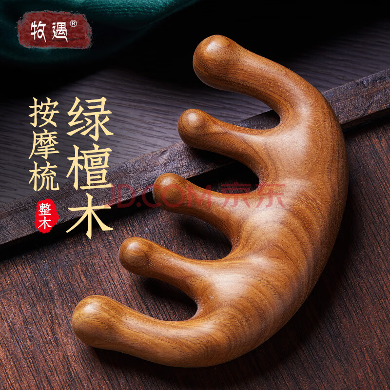 商品相册:牧遇绿檀木头部按摩梳子男五爪五指梳五齿头皮经络穴位养身多功能桃木第