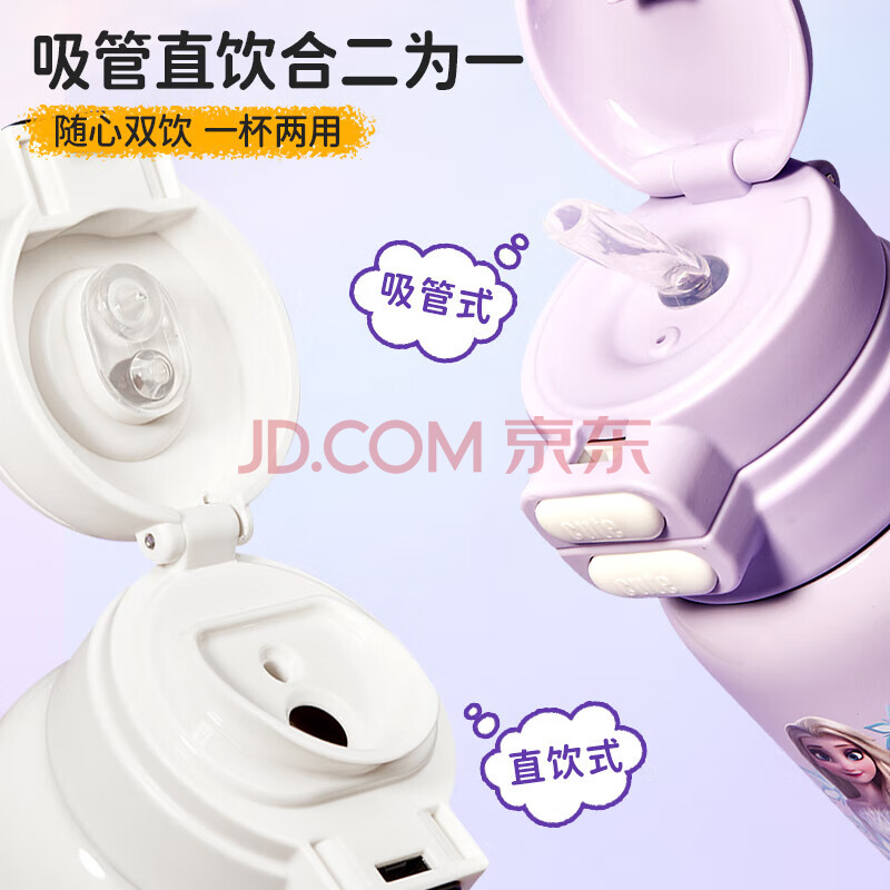 商品相册:迪士尼儿童保温杯带吸管316不锈钢宝宝直饮壶男女孩小学生双盖喝水杯子第