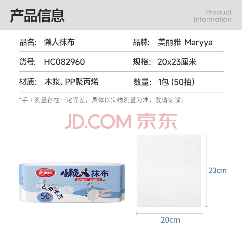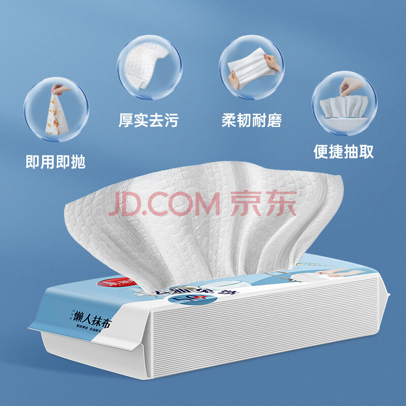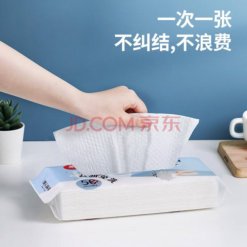 商品相册:美丽雅一次性懒人抹布20*23cm50抽加厚厨房用纸抽取式洗碗巾可水洗家用第