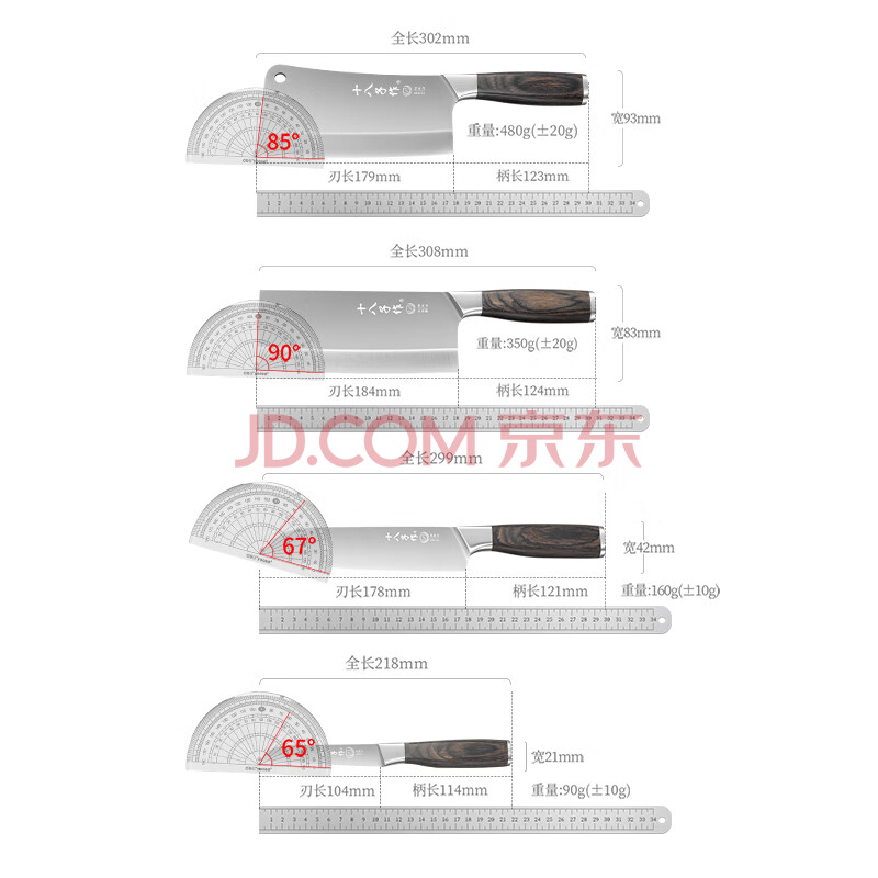 商品相册:十八子作复合钢切片刀钢材混搭刀具套装 菜刀组合铭锦四件套刀SL2101第