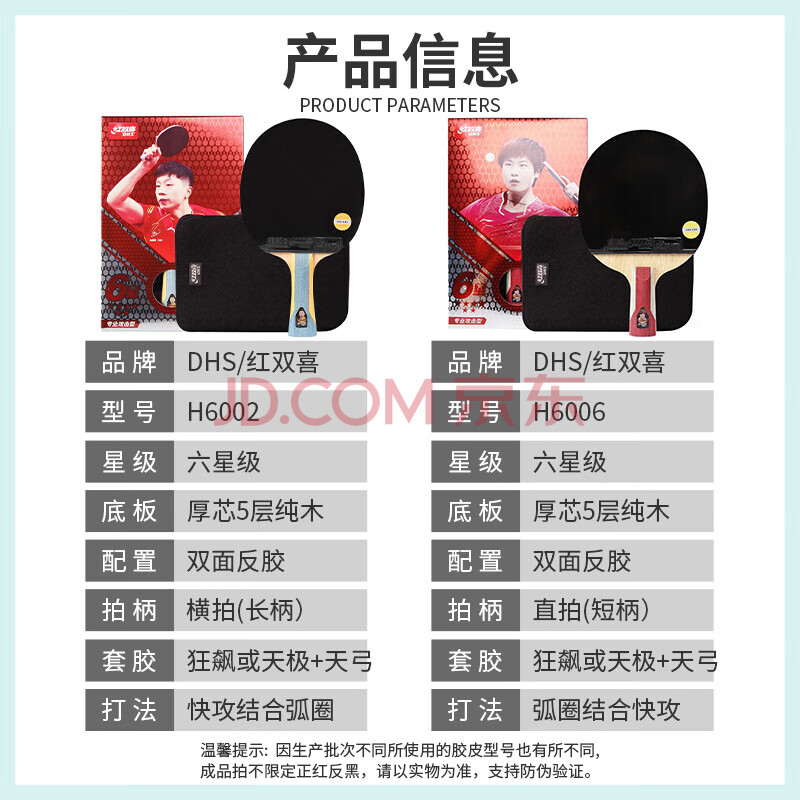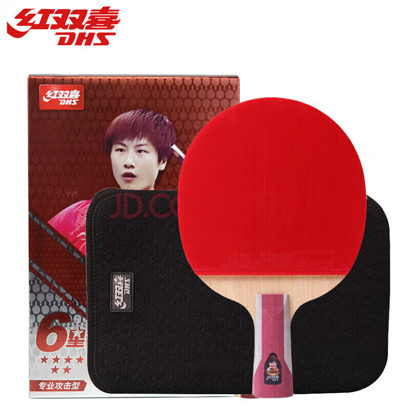 商品相册:红双喜 六星直拍(京仓速发+6球+拍套)乒乓球拍H6006直拍单拍第