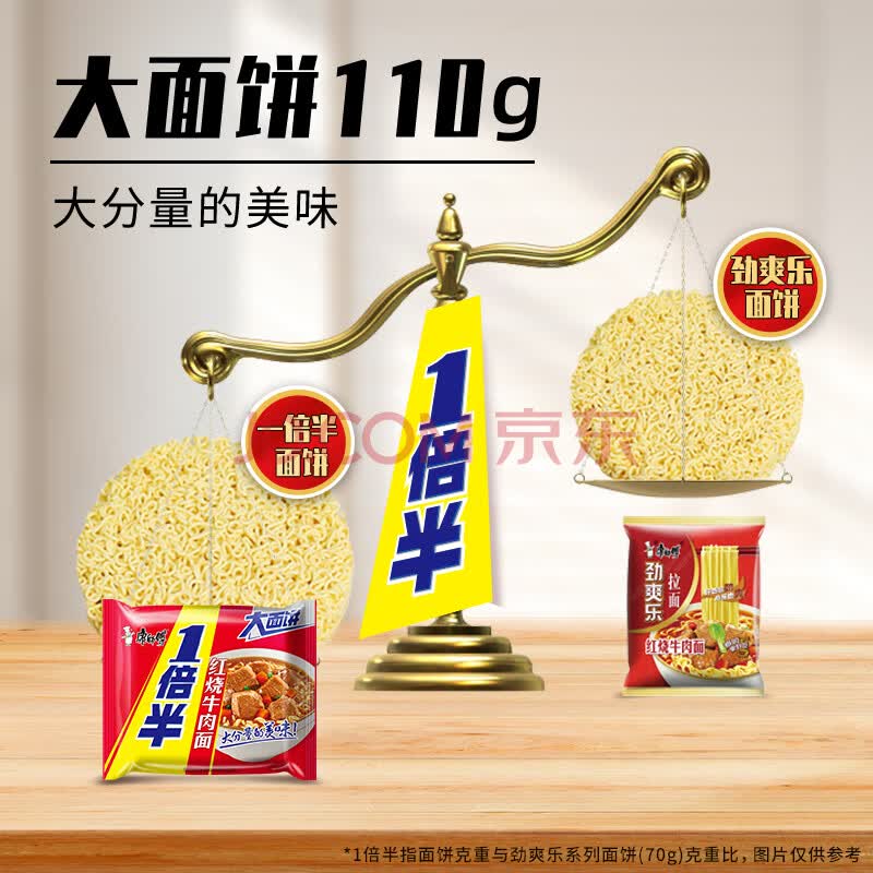 商品相册:康师傅 方便面 一倍半 红烧牛肉面五连包129g*5 泡面袋装速食 大面饼第
