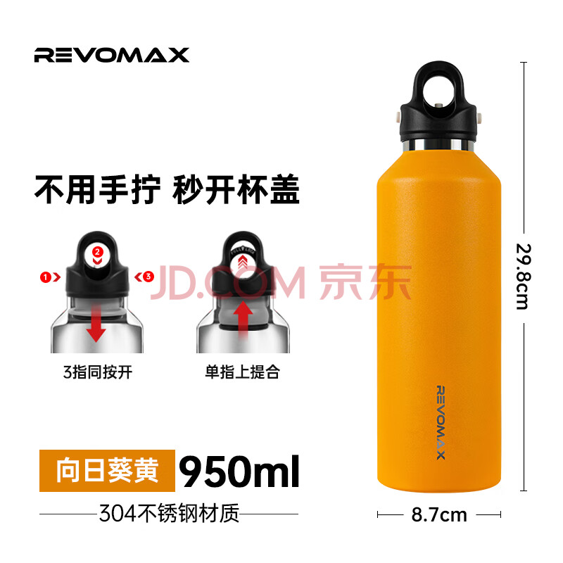 商品相册:REVOMAX瑞虎保温杯大容量户外水杯男女登山便携保温保冷杯向日葵黄950ml第