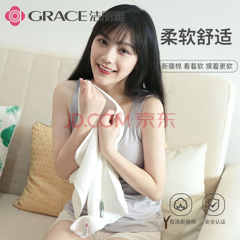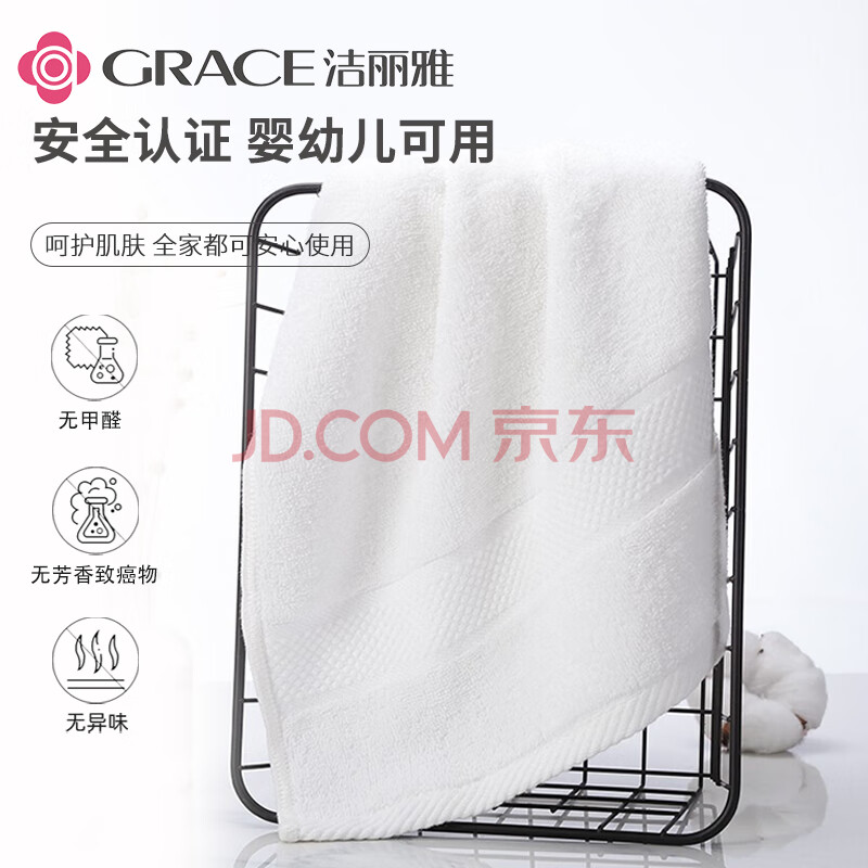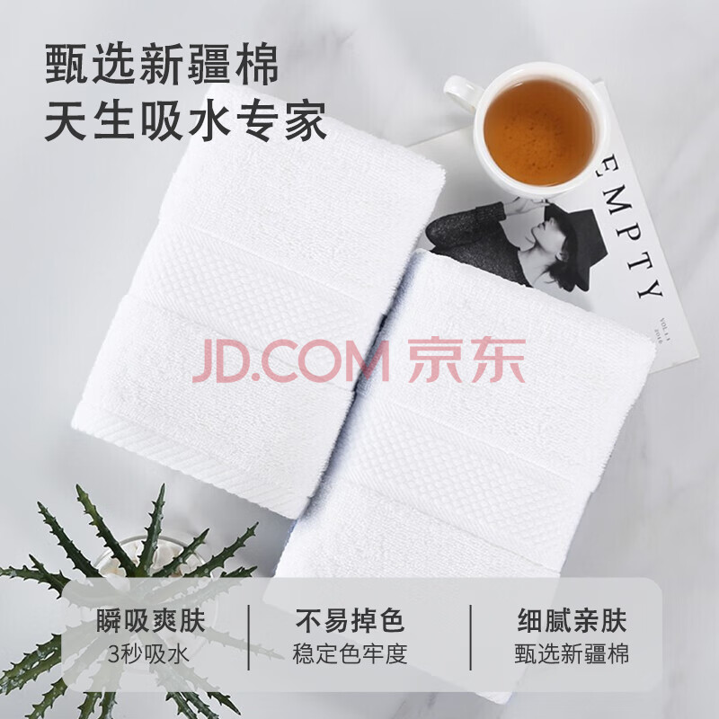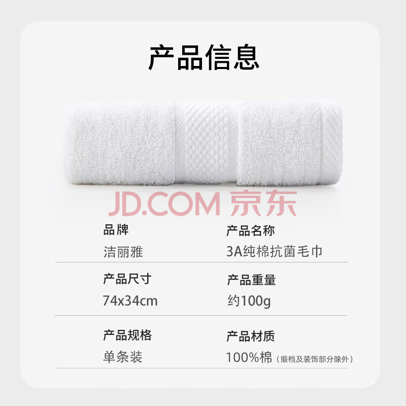 商品相册:洁丽雅7A抗菌A类毛巾纯棉单条纯白色酒店新疆棉成人洗脸巾 柔软吸水单条第