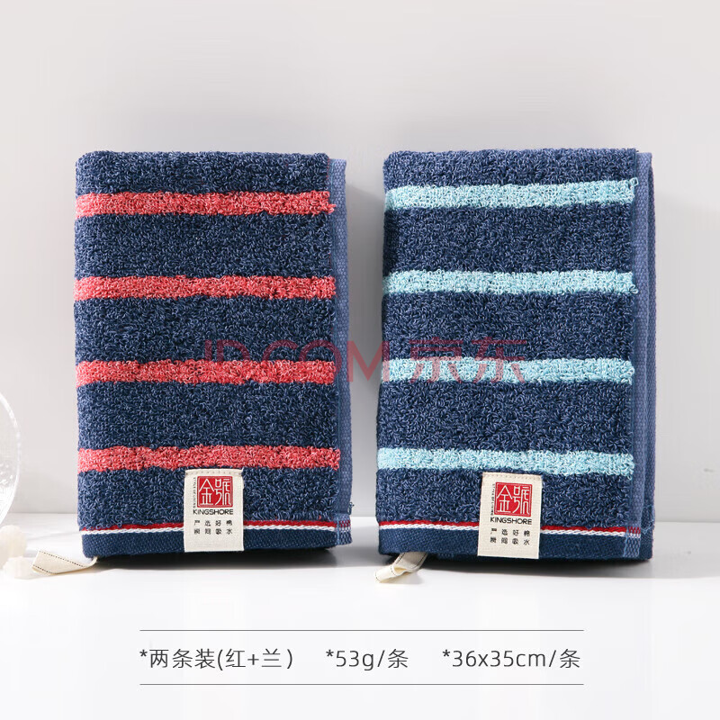 商品相册:金号小毛巾纯棉大方巾洗脸擦手小毛巾挂式成人A类全棉条纹洗脸帕2条装第