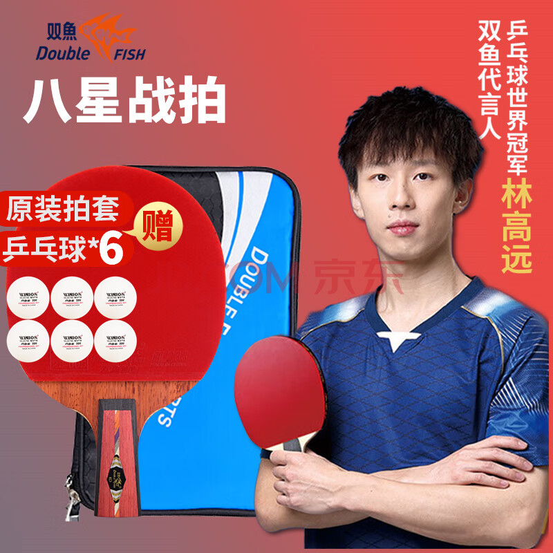 商品相册:双鱼乒乓球拍直拍 8星八星兵兵球拍短柄双面反胶 8D-E 附拍套第