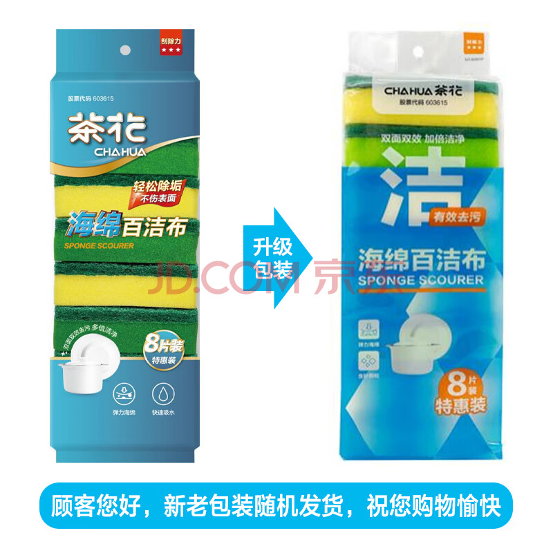 商品相册:茶花 洗碗海绵擦8片装抹布洗碗布去油污百洁布第