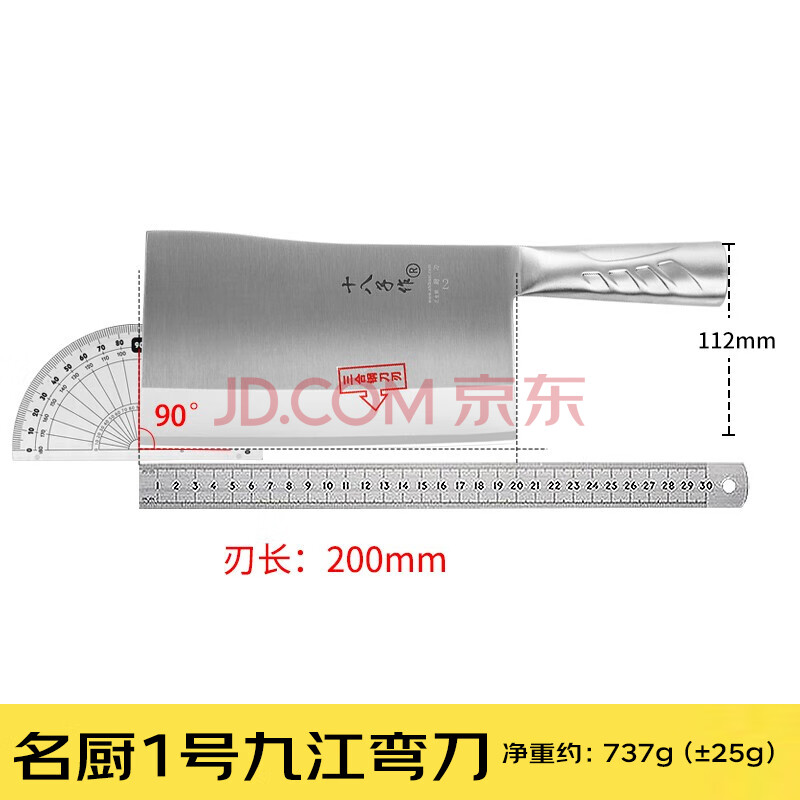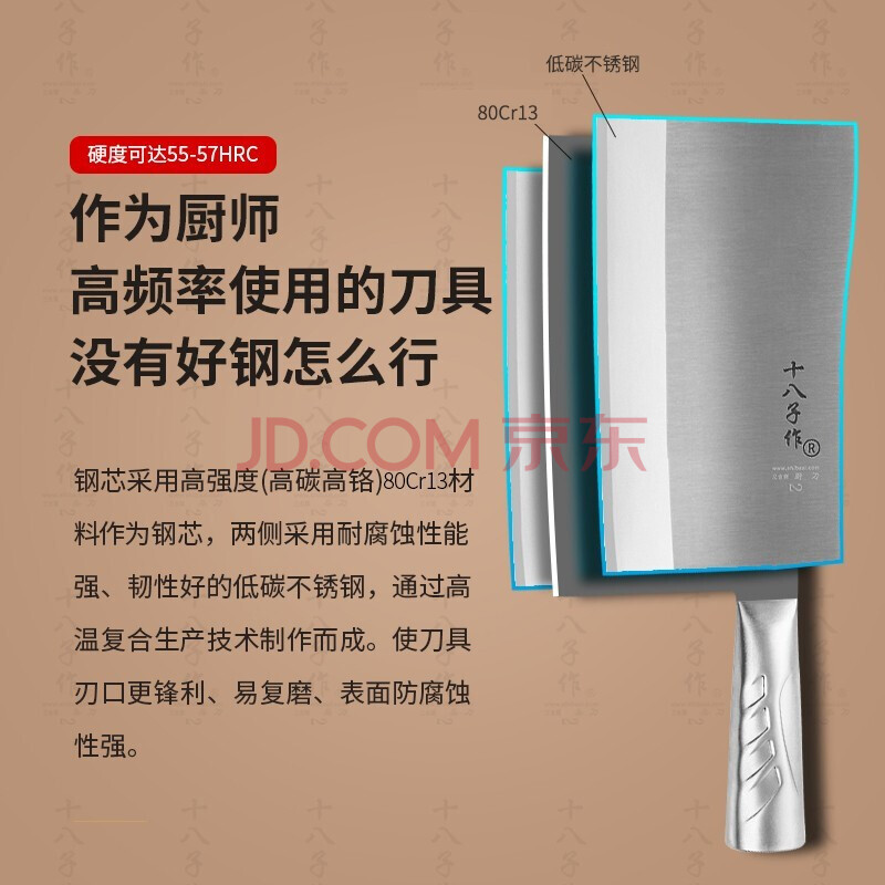 商品相册:十八子作专业厨师刀具复合钢菜刀 名厨1号大号九江弯刀TP216-1第