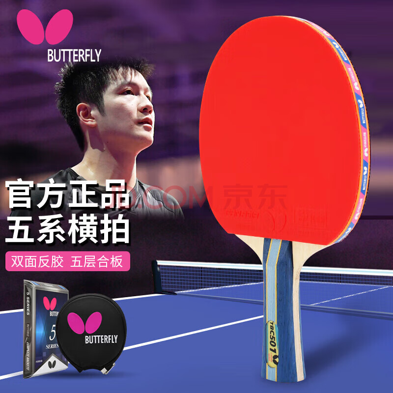 商品相册:蝴蝶(Butterfly)五星级乒乓球拍横拍 双面反胶皮比赛底板TBC501单拍 内附拍套第