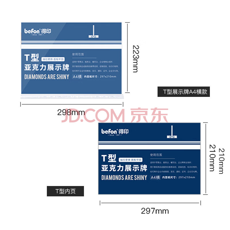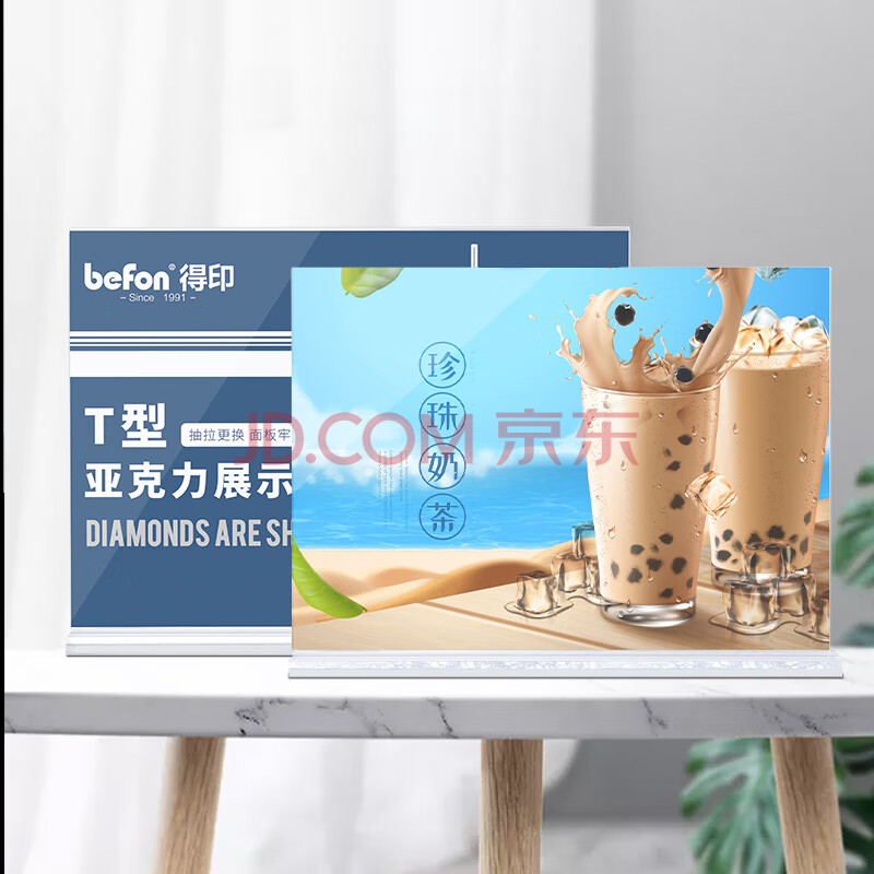 商品相册:得印亚克力展示牌A4横款 双面透明立牌桌牌 酒水菜单台卡台签 会议席位卡 座位牌广告牌 文具2985第