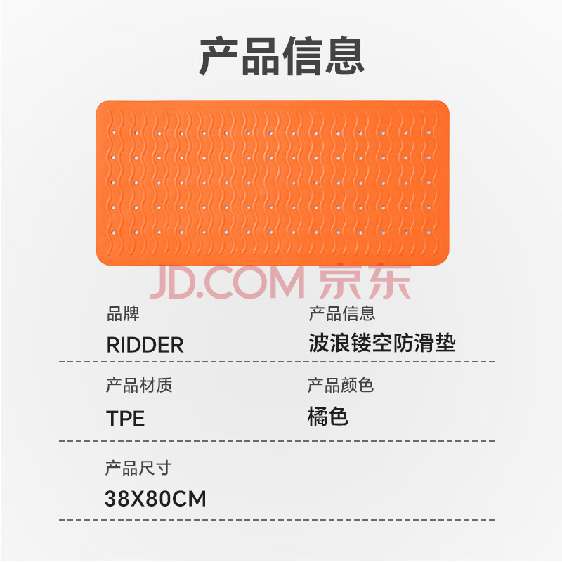商品相册:RIDDER德国进口TPE浴室防滑垫 卫生间止滑地垫 橘色38*80cm第