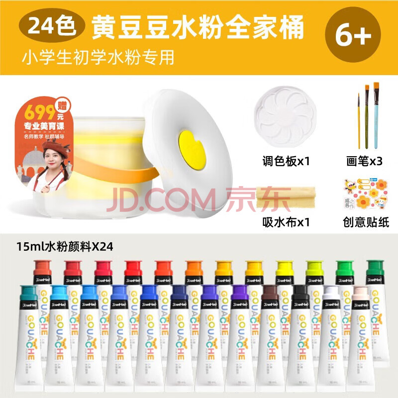商品相册:美乐童年水粉全家桶颜料儿童套装可水洗24色幼儿园小学生生日礼物礼盒第