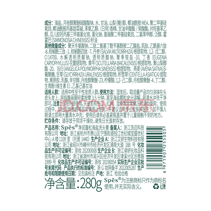 商品相册:Spes诗裴丝净润蓬松海盐洗头膏280g 洗发水男士 女士 滋润 洗发露第