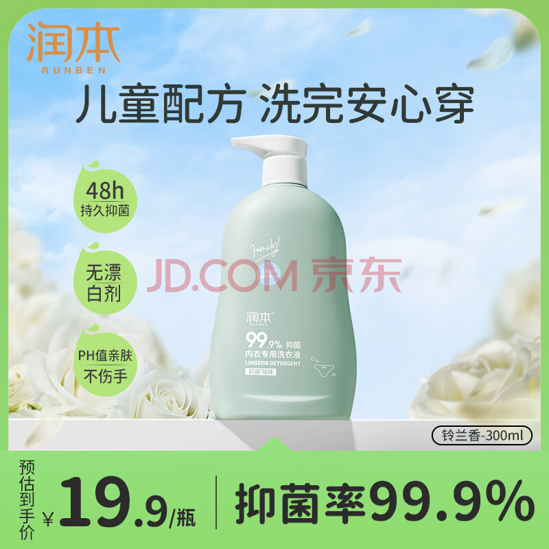 商品相册:润本儿童内衣内裤专用洗衣液300ml宝宝洗衣液抑菌祛味婴儿大人可用第1张/共6