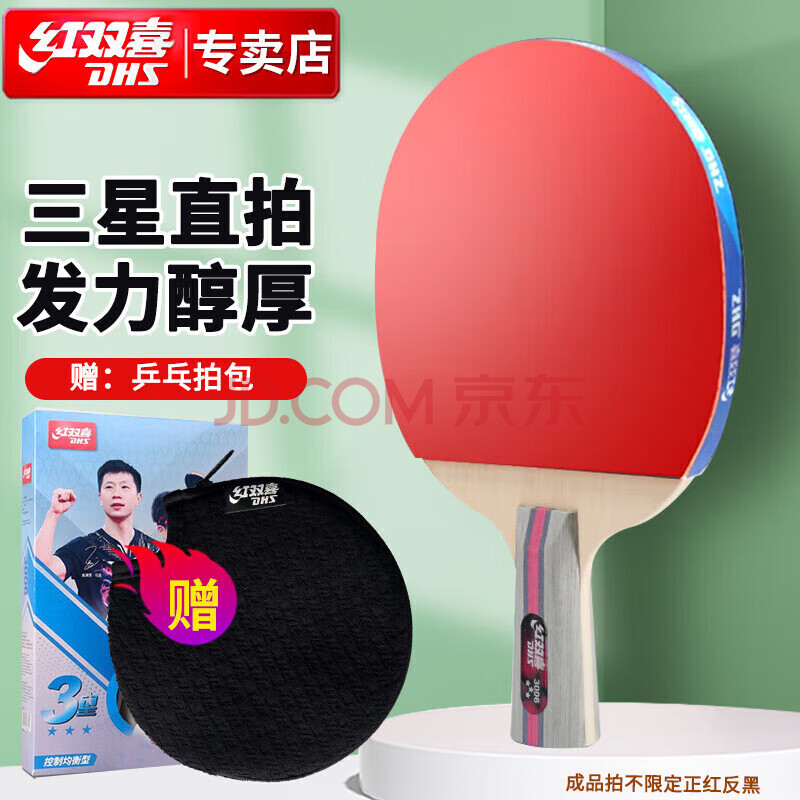 商品相册:红双喜DHS三星直拍双面反胶乒乓球拍3星单拍成品兵兵拍H3006*1第