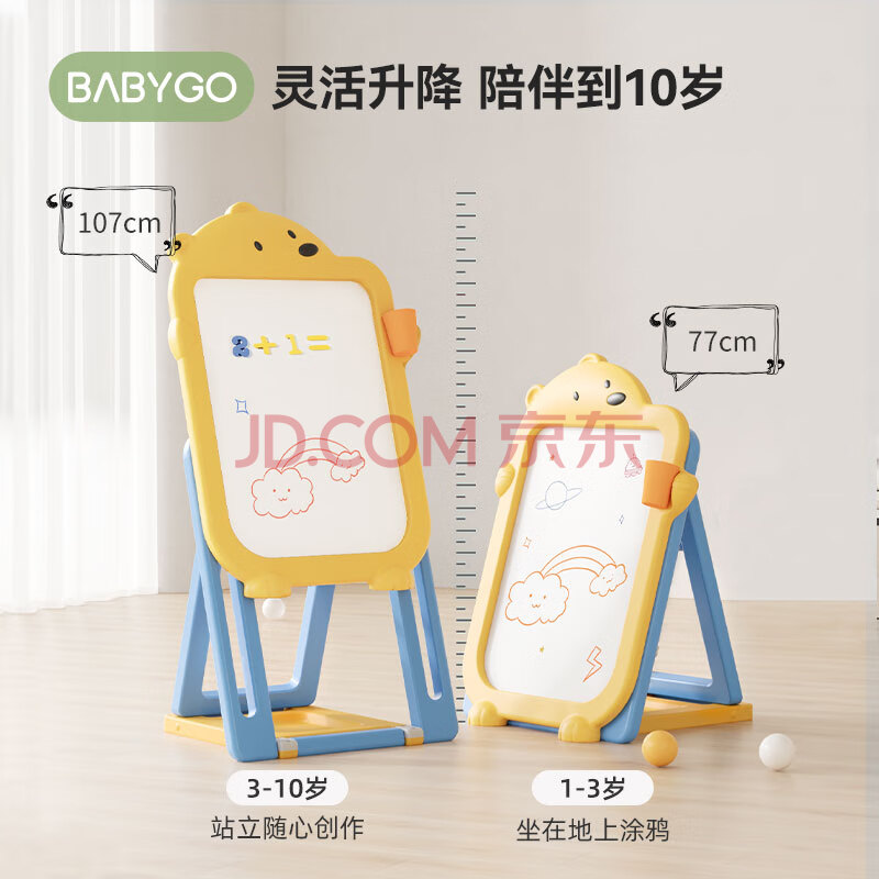 商品相册:BG-BABYGO儿童画板可擦写磁性白板6-12岁写字板支架式家用小黑板赠3支画笔第