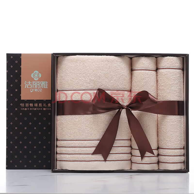 商品相册:洁丽雅 毛巾浴巾礼盒三件套 棉加厚成人男女礼盒套装 含手提袋 颜色随机发货7377/7378第
