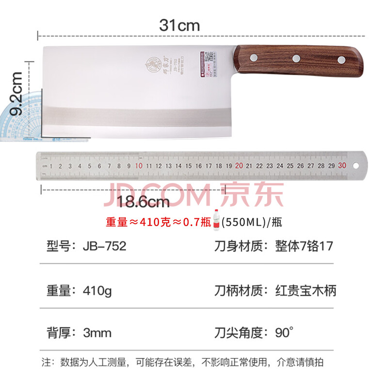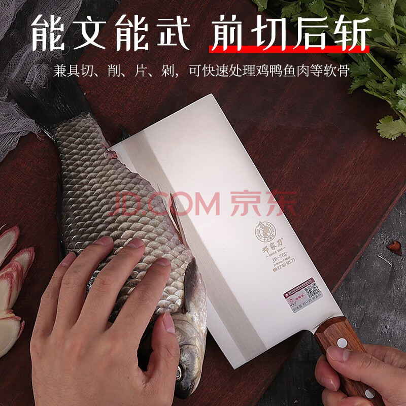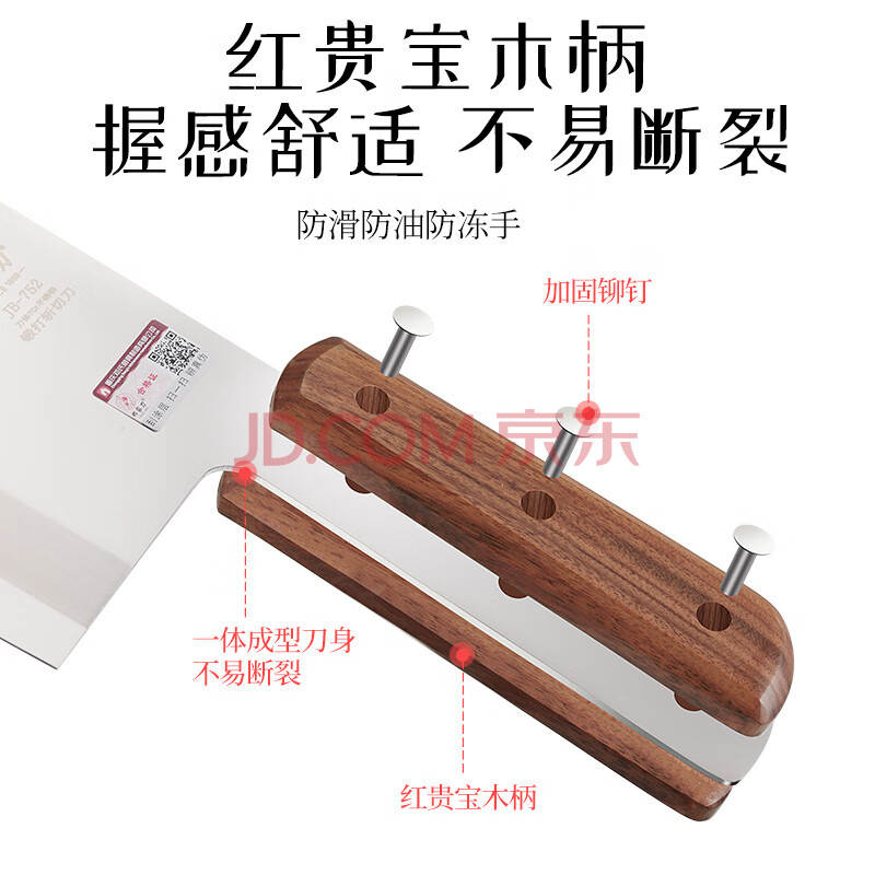 商品相册:邓家刀 传统锻打工艺7铬不锈钢菜刀 红贵宝实木刀柄 古华斩切刀 JB-752第