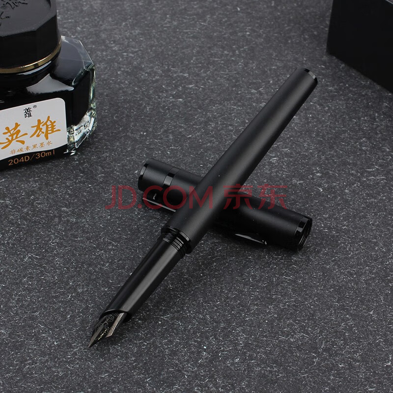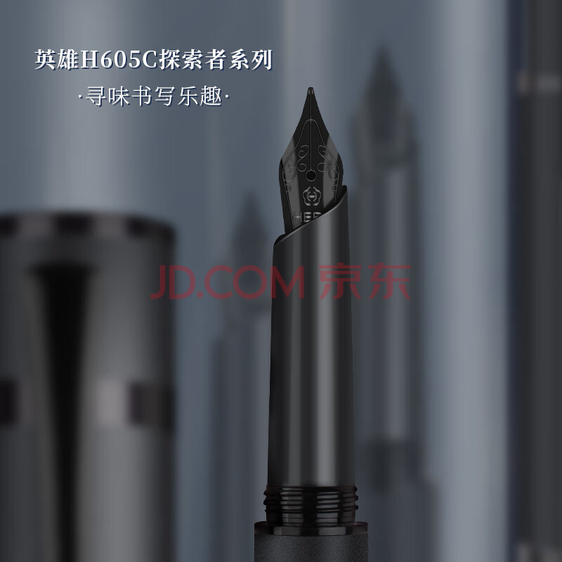 商品相册:英雄(HERO)钢笔 商务办公铱金笔时尚个性墨水笔书写套装【探索者】H605C黑色黑夹第