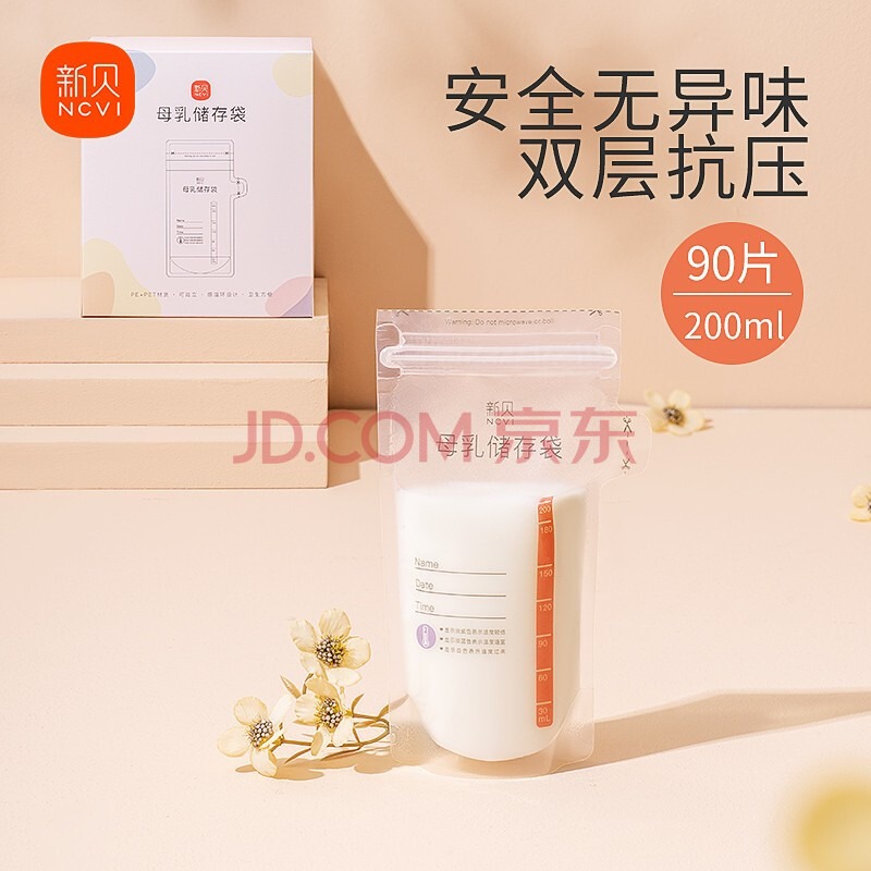 商品相册:新贝储奶袋90片装奶保鲜袋一次性存奶袋可冷冻加厚防漏200ML9166-5 第