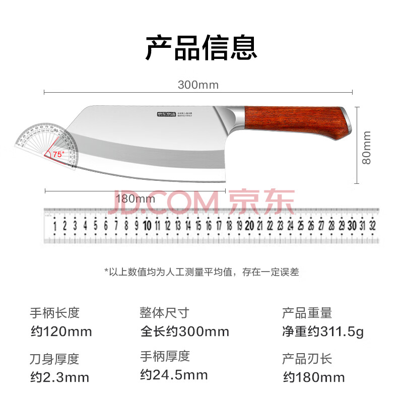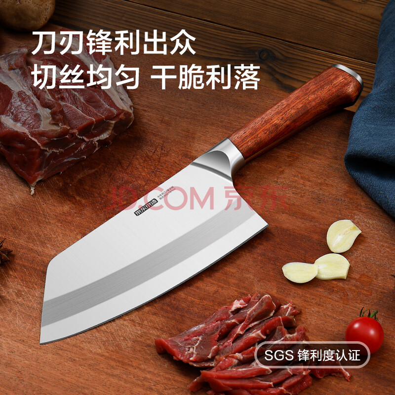 商品相册:京东京造 9系菜刀 刀具切菜肉厨师专用【9铬钢材】花梨木柄切片刀第
