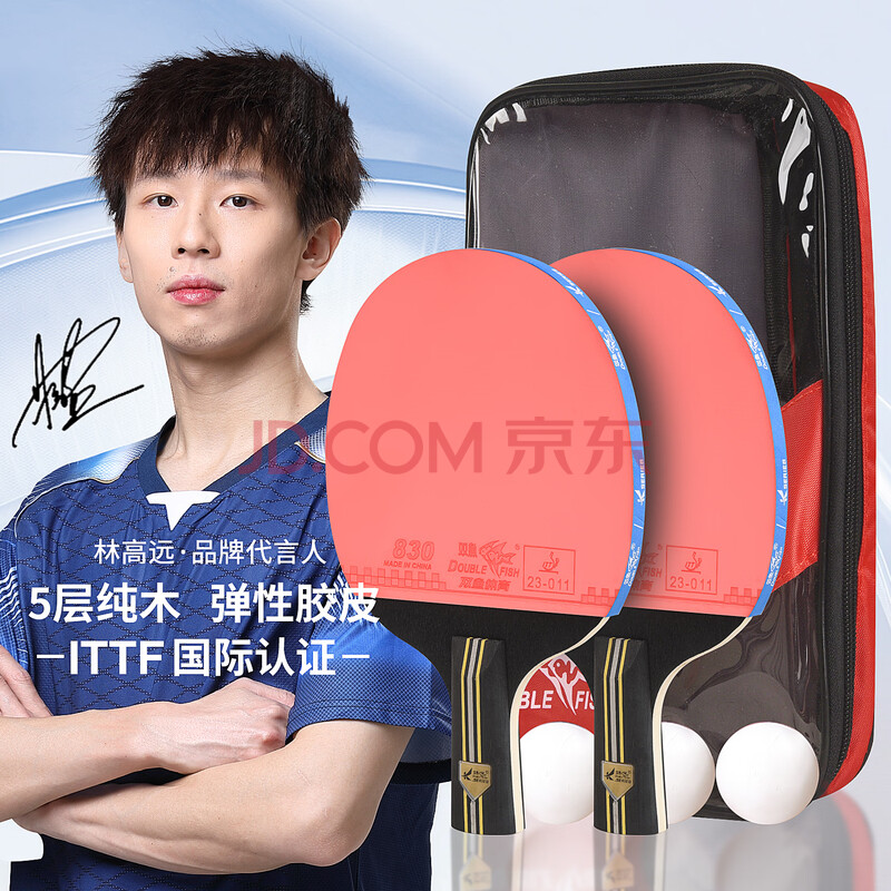 商品相册:双鱼乒乓球拍直拍双拍套装2只装 学生初学者用兵兵球拍K329A第1张/共4