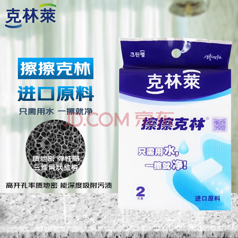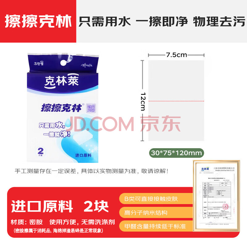 商品相册:克林莱擦擦克林纳米海绵密胺擦30x75x120mm2片厨卫家居车间污垢汽车内饰第