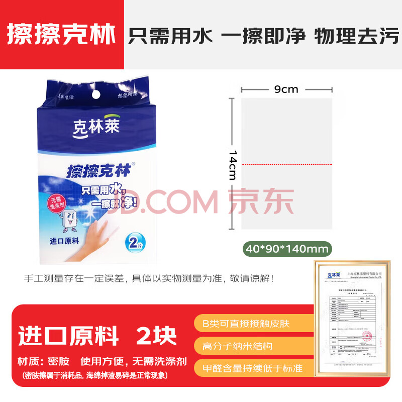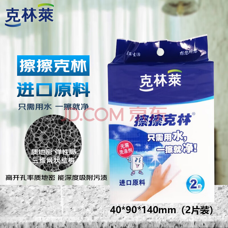 商品相册:克林莱擦擦克林纳米海绵密胺擦4x9x14cm2片厨卫家居清洁家居去污魔术擦第